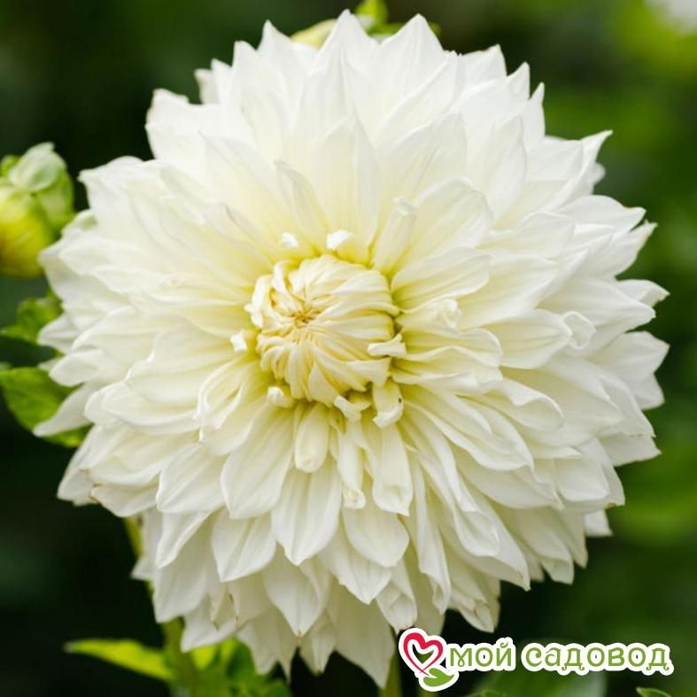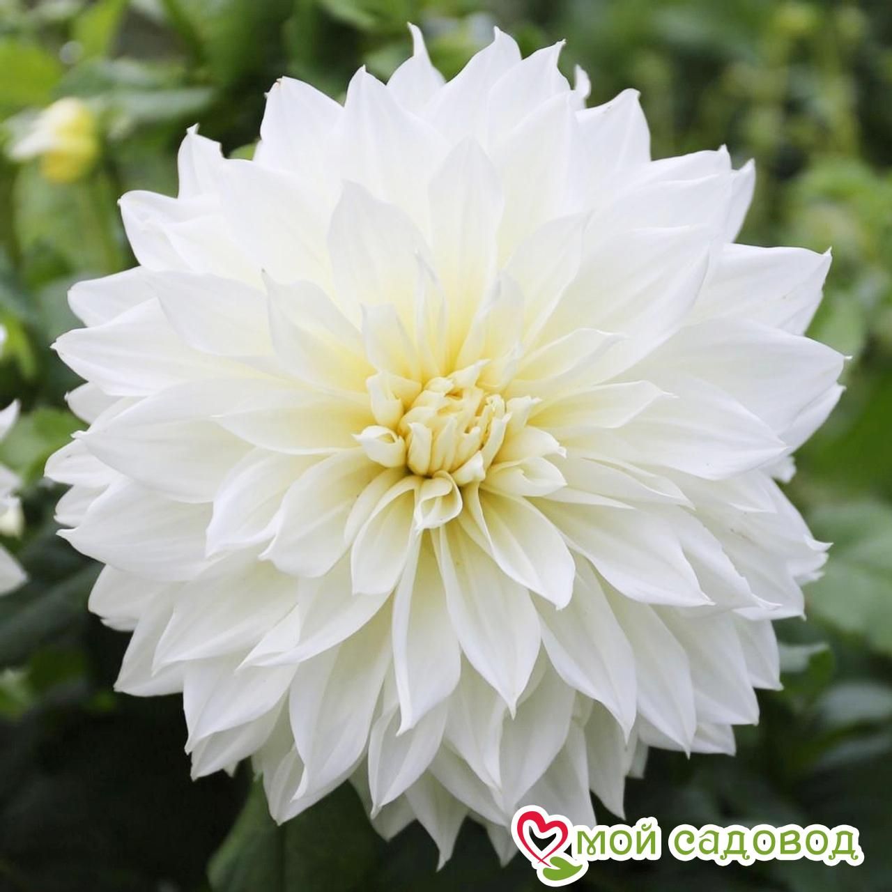 Это кустовой многолетник, принадлежащий семейству астровых. Для него характерны прямостоячие стебли, достигающие в высоту от 60 до 120 см. Листья темно-зеленые, глянцевые и перистые. Главное преимущество данного сорта – его превосходные махровые цветы. В полном роспуске их диаметр равен 25 см. Лепестки широкие, плоские, с острыми кончиками. Окрас – белый, с желтоватой сердцевинкой. Период цветения начинается в июле и длится по сентябрь.