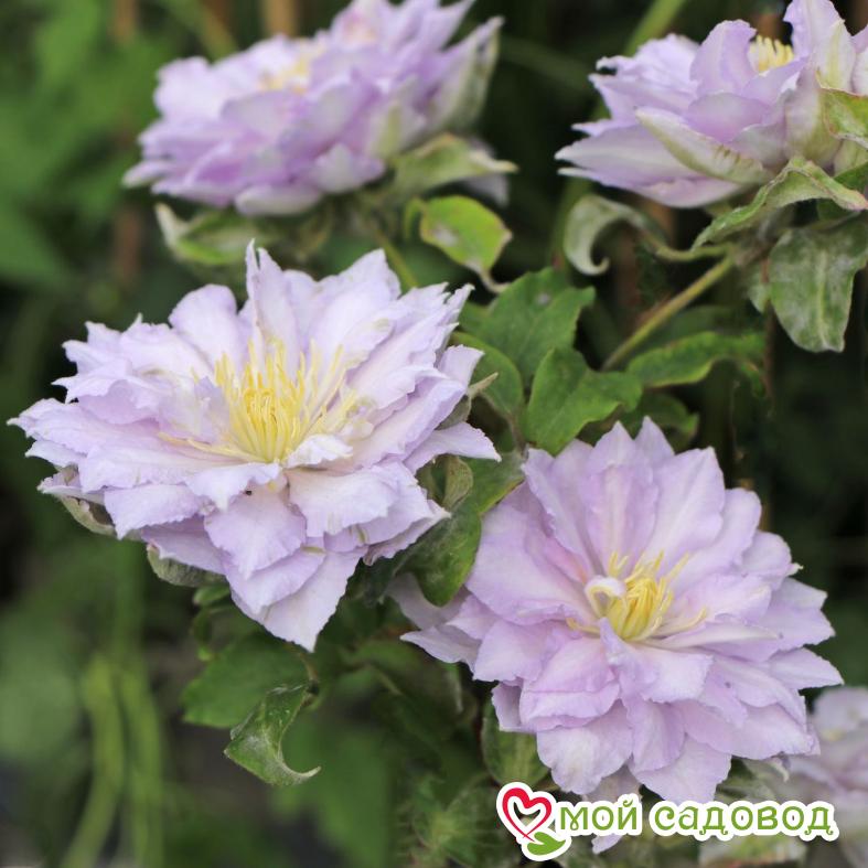 Клематис ‘Дансин Кинг’ — крупноцветковый раннецветущий сорт. Цветки всегда махровые, шаровидной формы, нежно-сиреневые, позже приобретают более раскрытую махровую форму и меняет цвет на бледно фиолетовый. Тычинки желтые. Диаметр цветка от 5 до 12 см. Цветет на побегах прошлого года махровыми цветками с мая по конец июня, повторное цветение на побегах этого года махровыми цветками с июля по сентябрь. Хорошо растет на солнечных и защищённых от ветра местах. Вполне устойчив к садовым вредителям и болезням. Особенно хорош для выращивания у ограждений, беседок, пергол, решёток. Прекрасно подходит для выращивания в больших контейнерах на террасах и балконах. В нашем интернет-магазине вы сможете купить Клематис Так же возможно вас заинтересуют Клематис Дансинг квин и Клематис Дансинг Смайл .